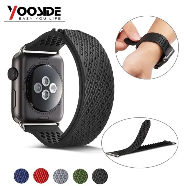 No Buckle Design Soft Silicone Watch Band Strap for Apple Watch Series 1/2 38mm 42mm Sport Wrist ...