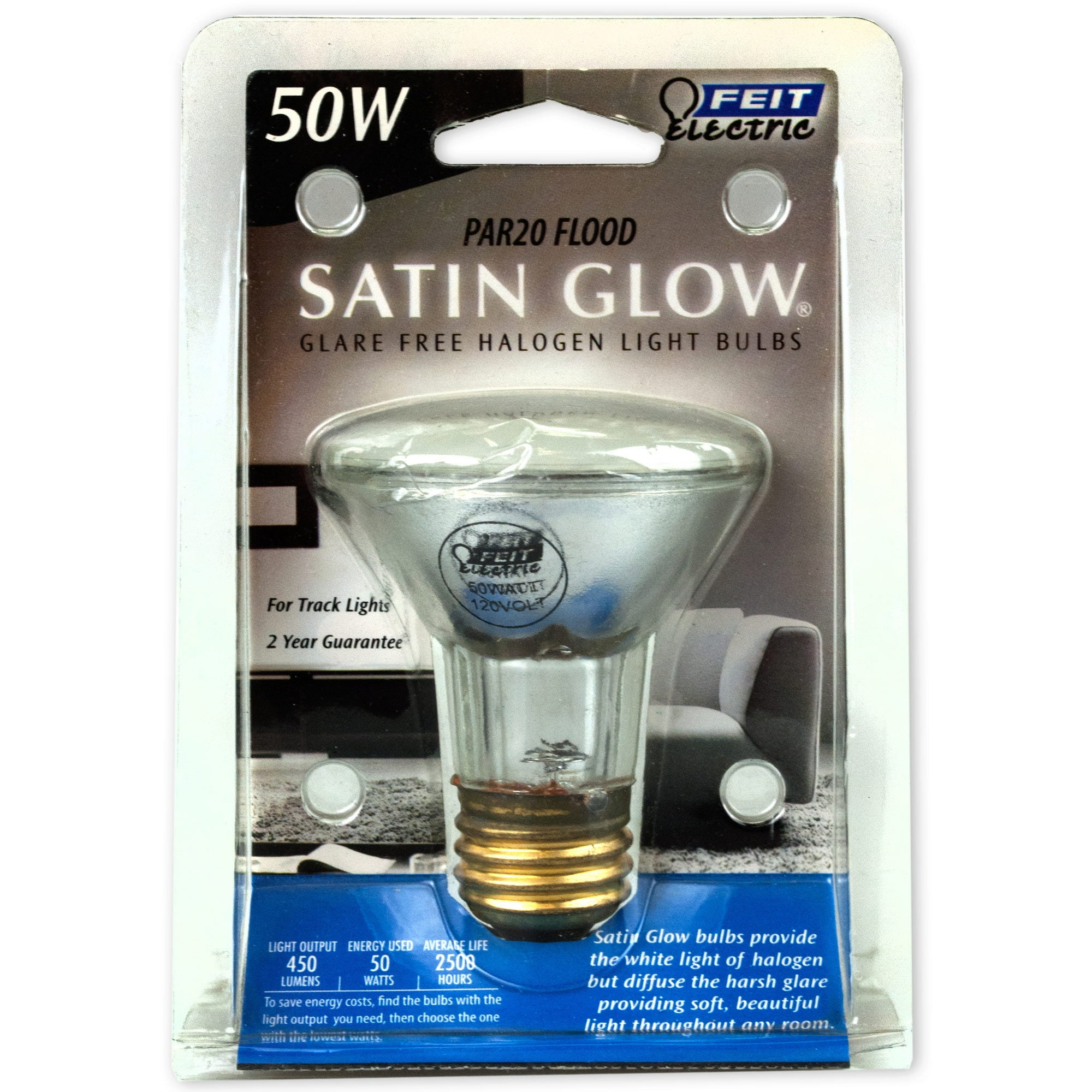 GE Classic 50-Watt EQ PAR20 Daylight Dimmable LED Light Bulb (2-Pack) 2 LED bulbs per package. PAR20 (2-1 with 2-In diameter) shape and size. Indoor floodlight bulbs (35 degree beam angle) for ceiling lights, can lights, recessed lights and track lights. 50 Watt replacement using only 7 Watts (500 lumens) 25,000 Hour life. Energy cost savings vs 50-Watt PAR20 halogen bulbs. Dimmable and works with most dimmer ...